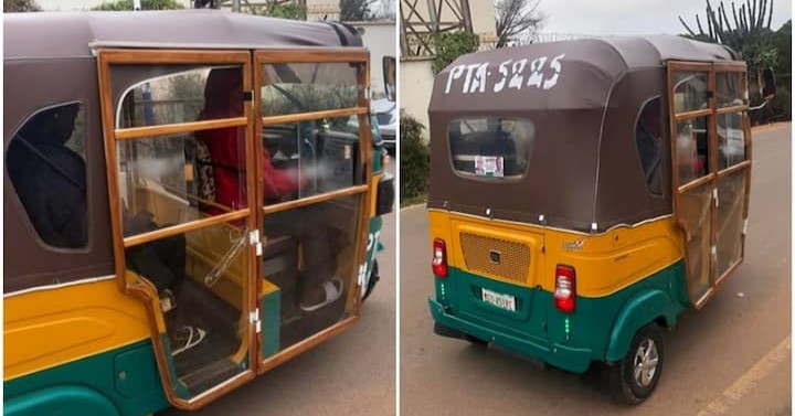 Nigerians are currently congratulating a keke rider who has been able to add a touch of innovation to his tricycle. The young man, said to reside in Jos, the Plateau state capital, added glass doors and windows to his machine, making it look different.